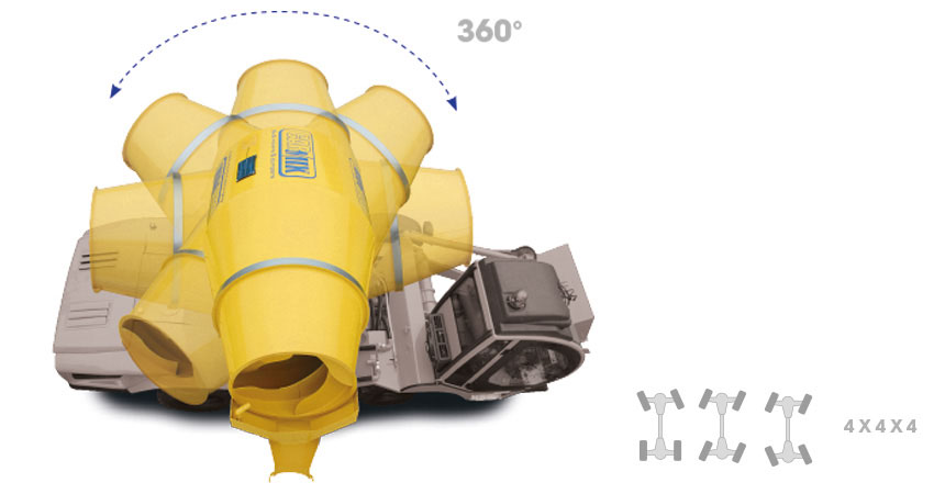 Güç Aktarımı: Hidrostatik Bosch Rexroth. Pompa ve Motor, Diferansiyellere 2 Vites Düşürücü (Çalışma ve Aktarma) Vasıtasıyla Bağlanır. 4 Tekerlekten Çekiş ve Direksiyon.